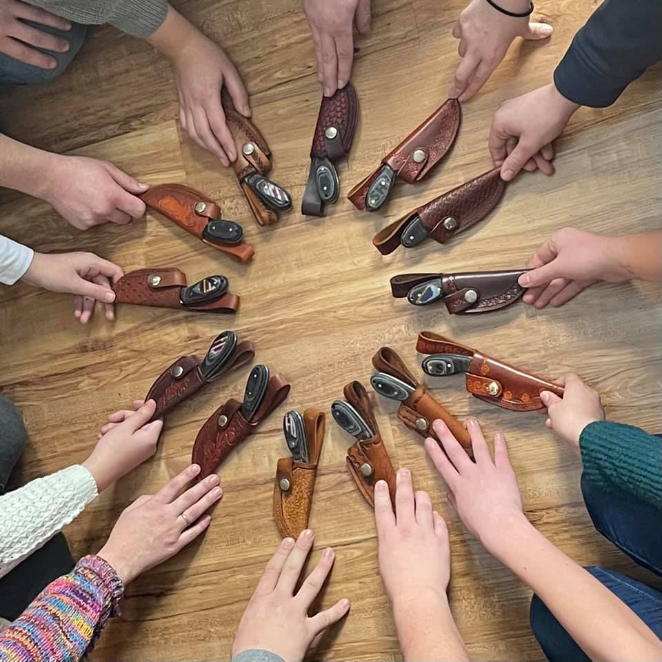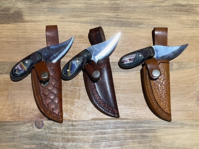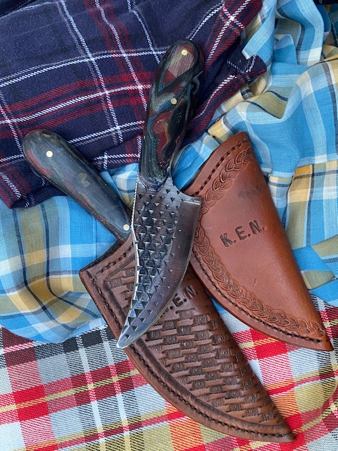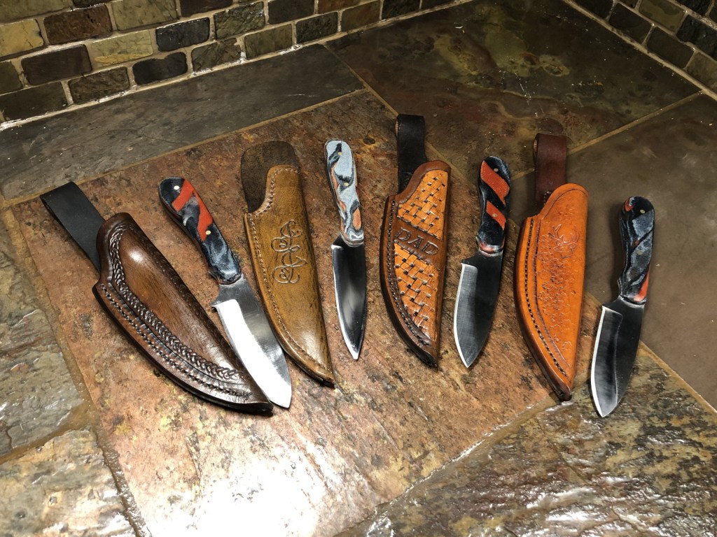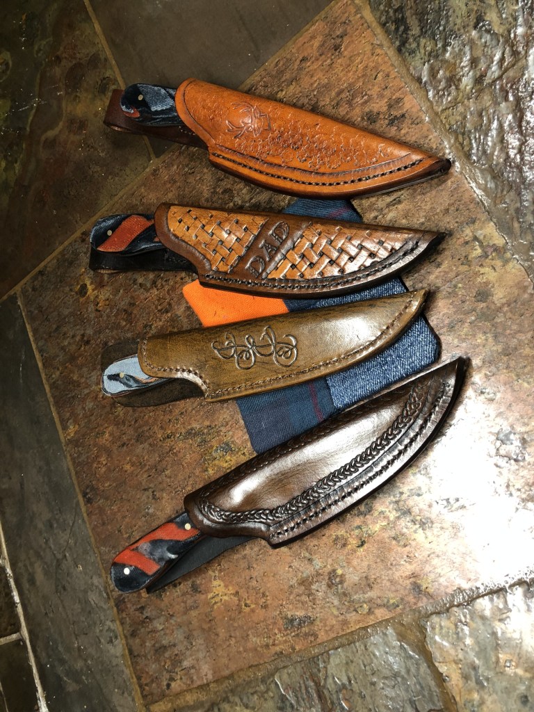 2) Think about the knife sheath. Chris will be asking you for thoughts on the color of leather or if you want a name, initials or design on the sheath.