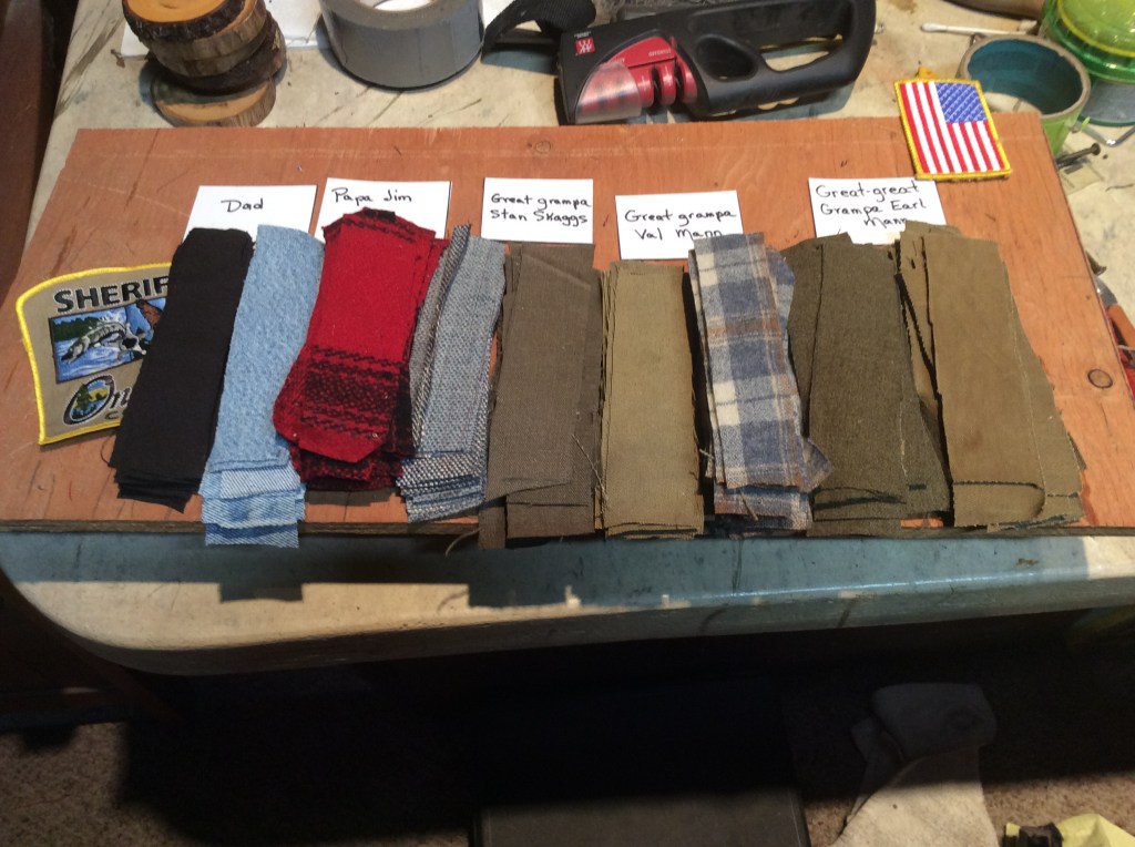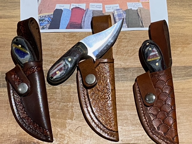 It’s always hard to lose a loved one. These knives were made using a favorite shirt and hunting jacket and gifted to the kids in memory of Jerry’s legacy.
