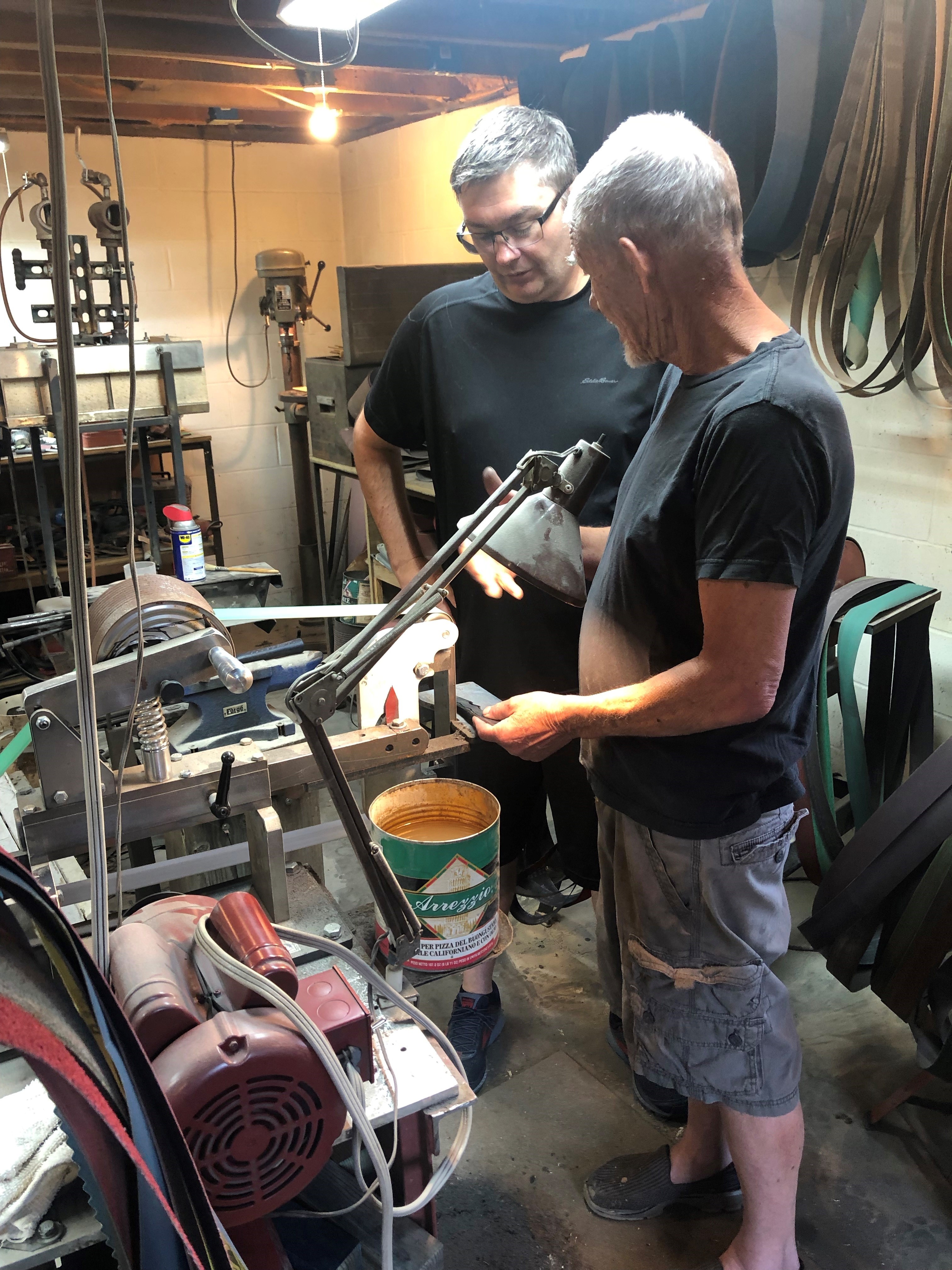 Do you have a memory that you don’t really know when it began, it was just always there? I have that with Grandpa Mann. He always made knives, 5:30 in the morning he could be found in the garage making knives, hundreds of knives were made through the years. Fast forward 45 years and time with grandkids became a priority. During one of those moments a grandkid ran up with a handful of old railroad spikes and asked what could be done with them. A memory of knife making surfaced and the decision was made to honor those memories with making a knife, it was a failure only in that the knife didn’t work but the memories created will last. Fast forward another year…have you watched Forged in Fire? No!! You have got to check it out! We have spent many evenings watching episodes of Forged in Fire and after watching numerous episodes Jim decided he had to figure out how to make a knife. The first knives were made for family members as gifts. We all know you can’t give someone just a knife so Chris put her creativity to work and learned how to make sheaths while Jim learned how to make a knife.