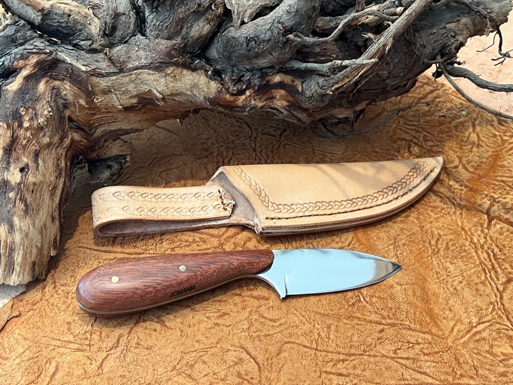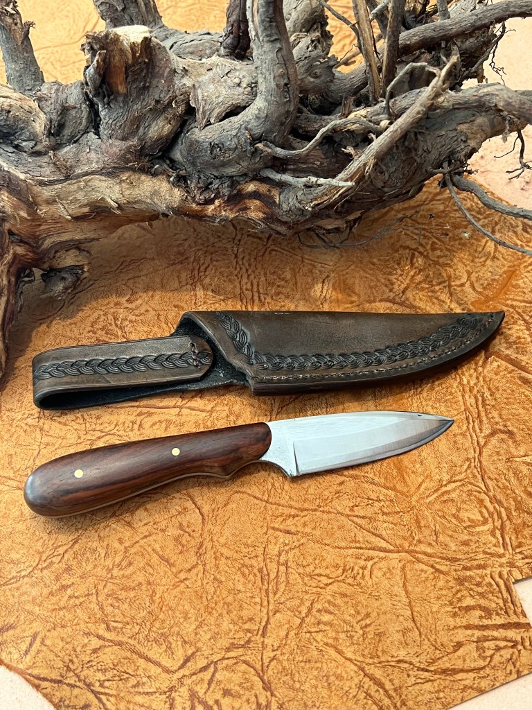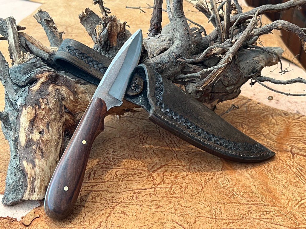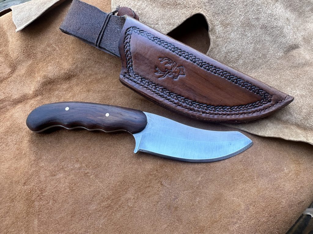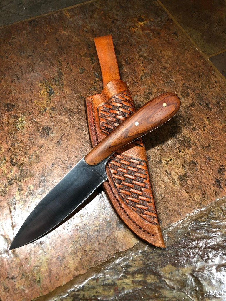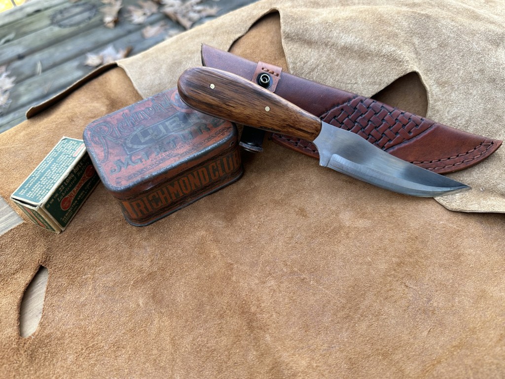 #1222 – Total length is 7 1/4 inches with a 3 1/4 inch blade. The blade is 1095 steel and the handle is Cocobolo wood.
