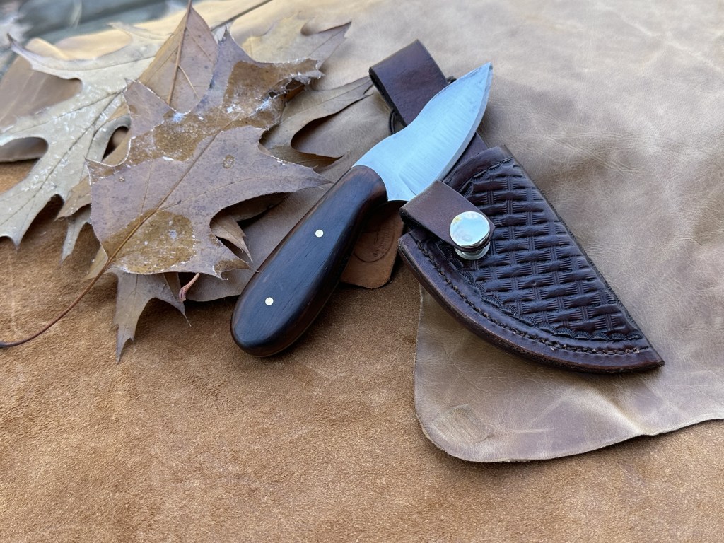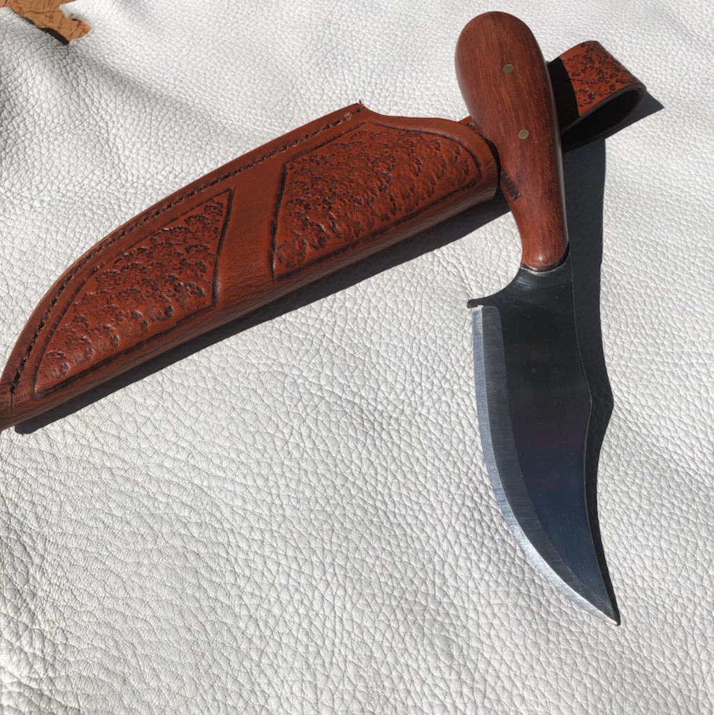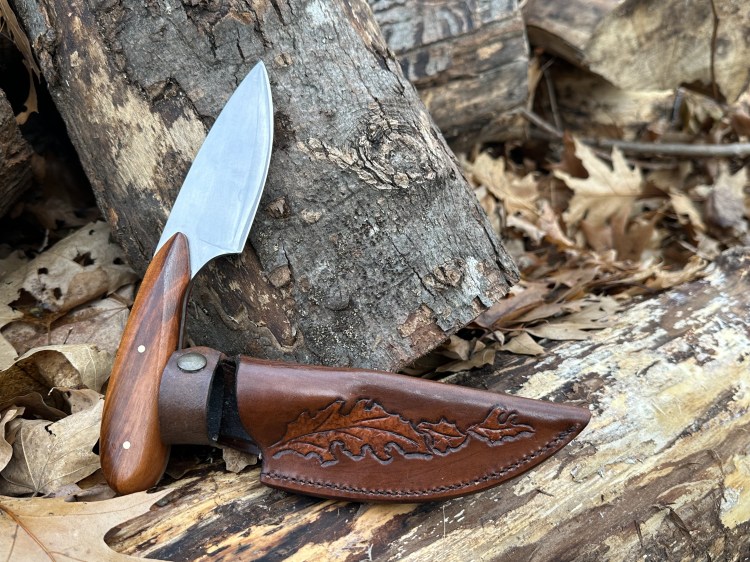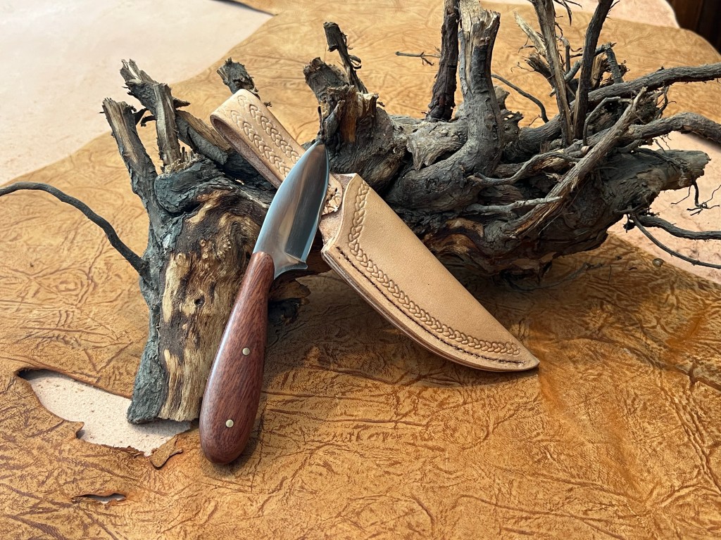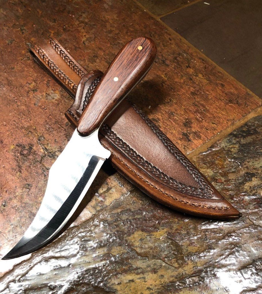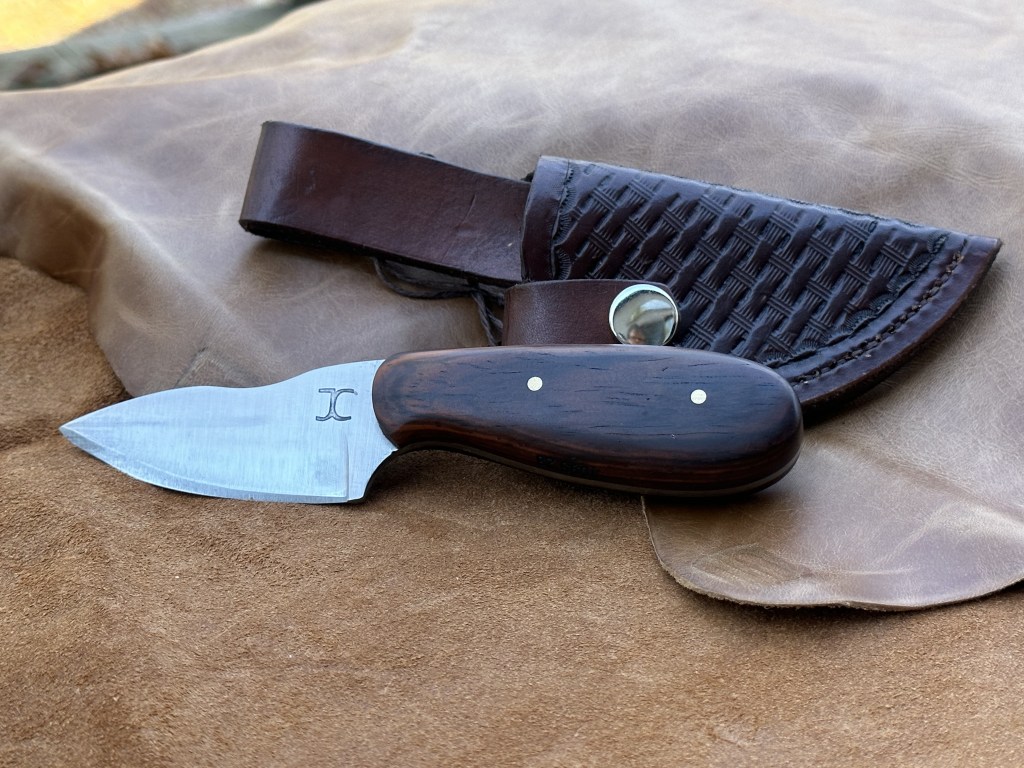 #1222 – Total length is 7 1/4 inches with a 3 1/4 inch blade. The blade is 1095 steel and the handle is Cocobolo wood.