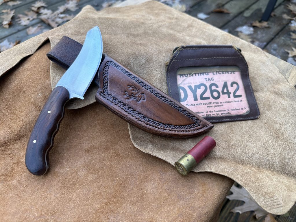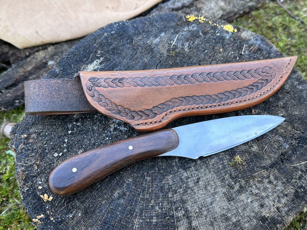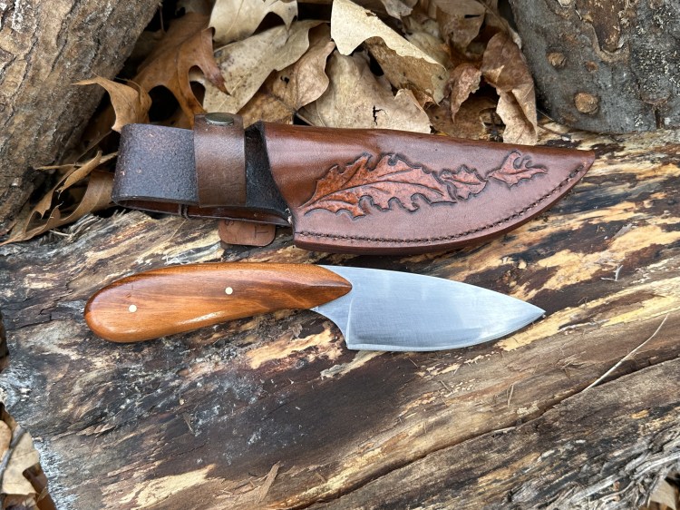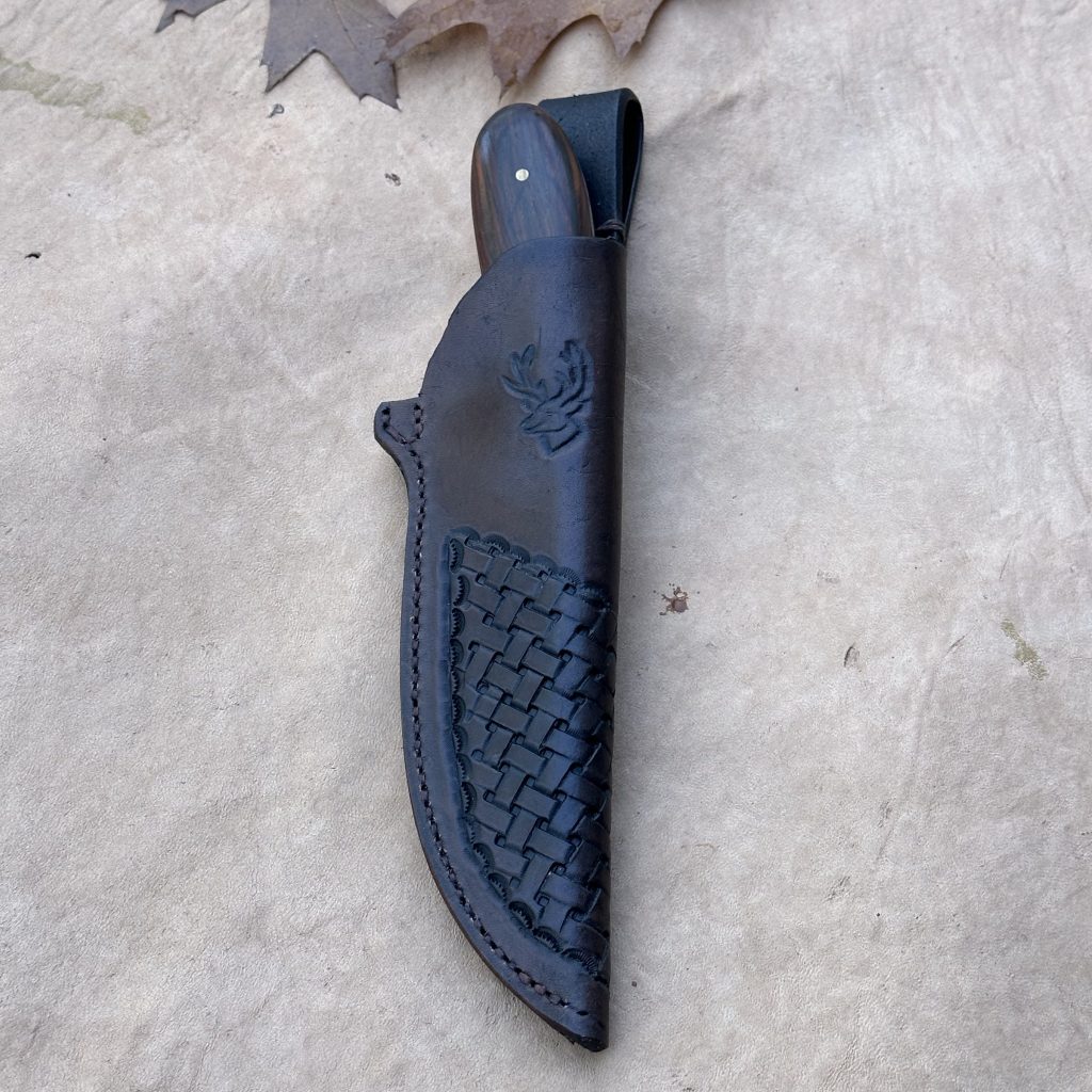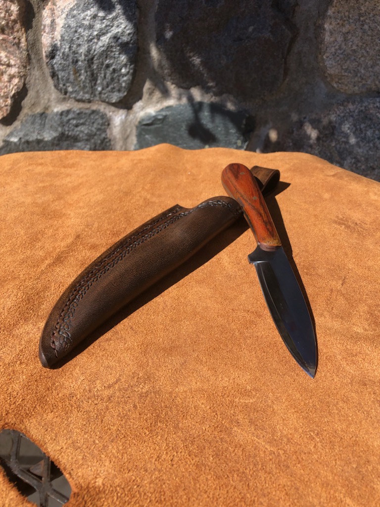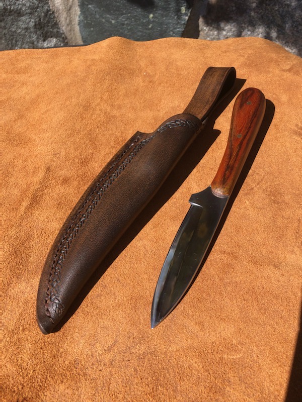 #1222 – Total length is 7 1/4 inches with a 3 1/4 inch blade. The blade is 1095 steel and the handle is Cocobolo wood.